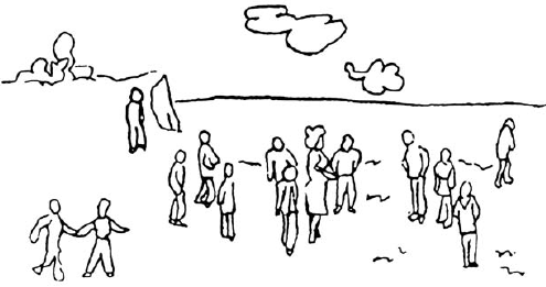 17. Теперь на этом рисунке размести себя и несколько человек. Нарисуй или обозначь крестиком. Подпиши, что это за люди.