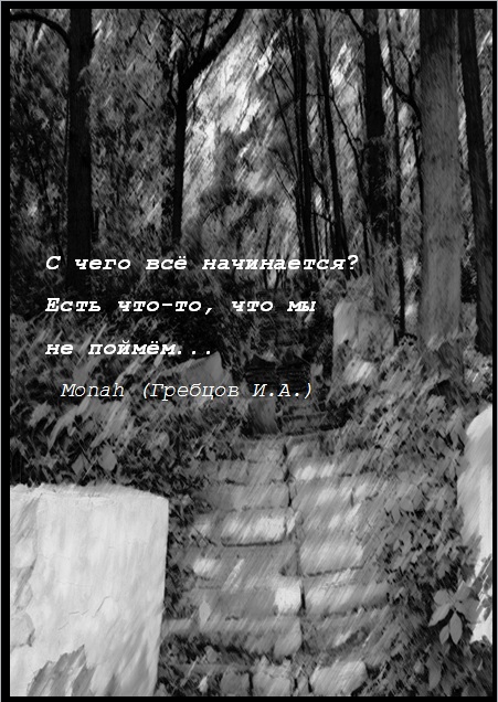 Как обычно, мы втроём сидели на сцене. Несмотря на замечательные новости, эти двое поругались. Вдруг ветер донёс до нас запах гари. Испугавшись, что может быть пожар, мы решили проверить. Спустившись по ступенькам, ведущим к длинному коридору, я ничего не заметил. Лёха решил залезть наверх по разрушенному строению, окружающему сцену вокруг. Он карабкался по перекрытиям из досок, которые давно прогнили, к тому же они были обгорелыми. Лена от испуга начала кричать на него. Она ругалась, просила, а потом уже и требовала, чтобы он оттуда слез. Алёшка только издевался над ней, подливал масла в огонь. Но всё, же вскоре спустился. Взаимные упрёки переросли в ссору. Накал страстей становился всё сильнее, они уже начинали переходить на личности, мне пришлось вмешаться. Друзья сидели, молча, дуясь друг на друга, а время шло к полуночи. Вышедшая луна начинала освещать тонкими лучами света развалины театра, завораживая и придавая месту таинственность. Уже собрались уходить, но тут послышались шорохи, голоса из подвала.