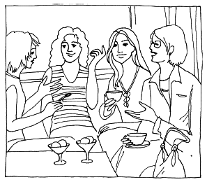 Первой вернулась Ксения с пирожным и чашечкой кофе. К ней скоро подошла Люся тоже с пирожным и кофе. Она поставила все на стол и сказала:
