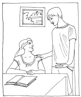 Сережа сидел за письменным столом и что-то рисовал в своем альбоме, потом повернул к Ксении голову и сказал: