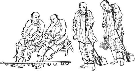 Отсылают их в штрафные колонии группами, заставляют проходить по шестнадцать миль в день; когда возможно, везут по воде, в противном случае осужденным приходится идти пешком. На марше осужденные разбиты на группы, в каждой из которых от двух допяти человек. Цепи или веревки, которыми они связаны, обернуты у них вокруг шеи, ноги закованы в кандалы, а руки связаны разными способами. Примерно так же было принято связывать узников у древних египтян. Древнеегипетские скульптуры иногда изображают длинные процессии узников, ведомых куда-то. В некоторых случаях они связаны по двое, трое, четверо или пятеро. Мы находим много упоминаний о заковывании узников в кандалы в Священном Писании, о таком обычае отчетливо говорится в следующих стихах: 2 Пар., 33: 11; Пс, 2: 3; Пс, 149: 8.
