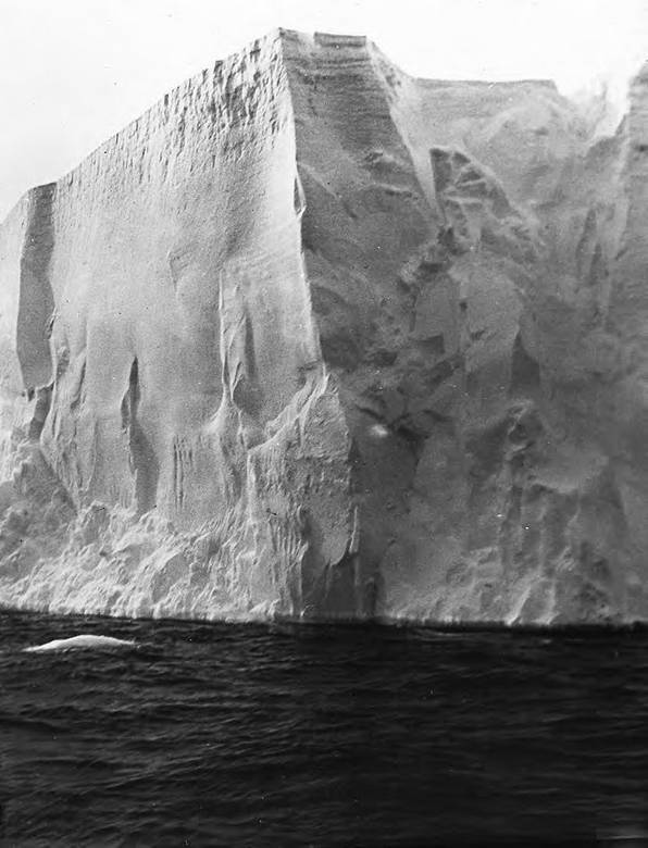 Теперь длинная полоса айсбергов, через которую мы шли более 128 км с севера на юг, осталась позади. На какое расстояние простиралась она к востоку и к западу, неизвестно, но я полагаю, не будет преувеличением сказать, что состояла она из многих тысяч айсбергов. Об их происхождении можно было только догадываться; вероятно, их принесло от того края Ледяного барьера, который находится восточнее Земли короля Эдуарда VII. Если это так, то там барьер должен быть ниже, чем Великий ледяной барьер, но более равномерен по высоте, так как высота большинства айсбергов, мимо которых мы проходили, не превышала 40 метров и все они примерно одинаковой толщины.