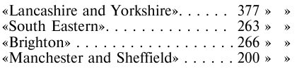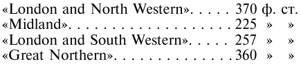 Вот ещё один факт, показывающий, в каких широких границах ловкие дельцы из правлений железнодорожных обществ могут толковать понятия ремонта и возмещения с целью получения больших дивидендов. Согласно цитированному выше докладу Р. П. Уильямса, различные английские железнодорожные общества в среднем за ряд лет заносили на счёт дохода, а затем списывали на ремонт и на издержки по сохранению железнодорожного полотна и построек следующие суммы (ежегодно на английскую милю длины линии):
