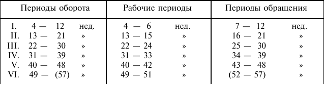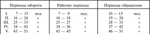 I-ый период оборота: 1–9-я недели.