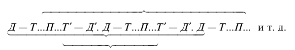 Итак, рассмотрим прежде всего процесс Т' – Д' – Т, протекающий в сфере обращения между двумя крайними членами П…П.