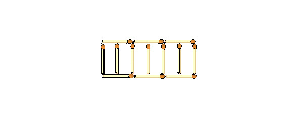 – Из 12 спичек нужно составить фигуру, в которой было бы три одинаковых четырехугольника и два одинаковых треугольника. Как это сделать?