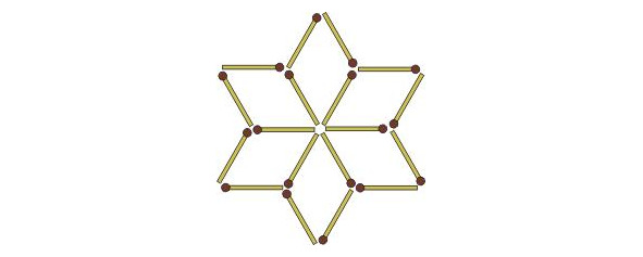 – В фигуре, представленной на рисунке, нужно так переложить 6 спичек с одного места на другое, чтобы образовалась фигура, составленная из 6 одинаковых четырехугольников.