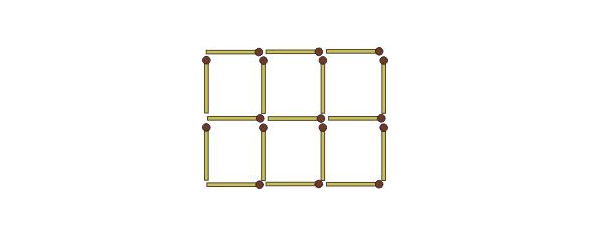 8. В решетке из спичек, представленной на рисунке, нужно так убрать 4 спички, не трогая остальных, чтобы осталось 5 квадратов.