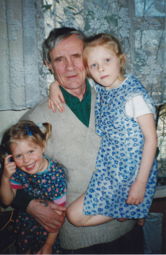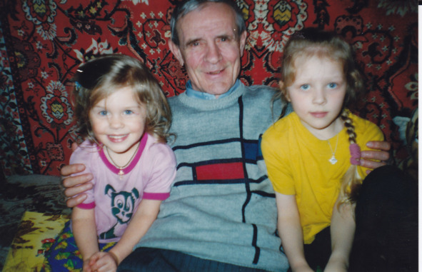 Папа (Генрих, в крещении Андрей) с внучками Настей и Соней, 2002г.