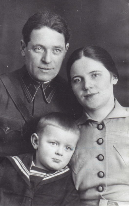Предвоенная фотография деда Соломона Борисовича с бабушкой Марией Михайловной и маленьким моим папой – Герочкой. Младших сынков-близнецов тогда еще не было. Ок.1939 года. Дед закончил военную академию Фрунзе, был инженер-майором, строил аэродромы. Вся его родня погибла в войну. До войны и академии жил в Житомире и работал в кузнице. Воевал еще в гражданскую. Брат Яков погиб в финскую. Зима 2022г