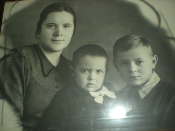 Фото бабушки Марии Михайловны (1913—1969) в эвакуации вместе с моим отцом (старший, Герочка, 1937—2016) и маленьким дядей Борей (род.8.12.1940), ок.1943г. Дядя Эдик, близнец дяди Бори, остался в Москве с тетей Фаней, сестрой бабушки, и бабушкой Наталией Парфеновной – моей прабабушкой (матерью 10 детей), потому что боялись, что одинокая молодая мама не потянет троих деток. 8.02.2022