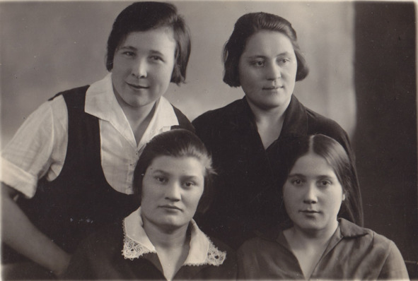 Тетя Фаня молодая с подругами, справа вверху, сестра папиной мамы. 11.05.2020