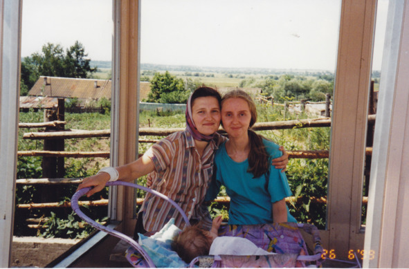 Супруга с Милой у Оптиной пустыни, 26.06.1999г.