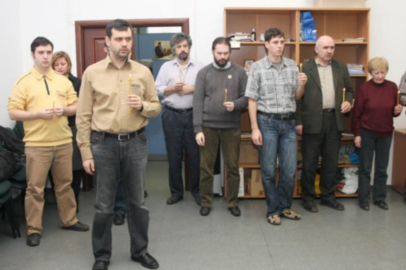 декабрь 2008г., молебен апостолу Фоме в редакции, на первом плане – главный редактор Владимир Легойда