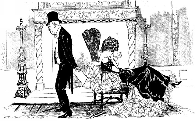 He heard the rolling wheels grit on the drive outside, and then there was murmuring conversation in the hallway, and then Kalora entered. His most dreadful suspicions were ten times confirmed. She wore no veil and no flowing gown. She was tightly incased in a gray cloth suit, and there was no mistaking the presence of a corset underneath. On her head was a kind of Alpine hat with a defiant feather standing upright at one side. Before her father had time to study the details of this barbaric costume, he sat staring at her as she was silhouetted for an instant between him and the open window.