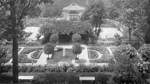 But the possibilities of making the tennis court a great social adjunct to the country place are not always fully appreciated by those who follow the game. Primarily the courts are laid out for practical use, but this should not interfere with their artistic development to make them attractive features of the garden. If one has the land sufficient for a tennis court, it should be utilized with the idea of making it a pleasant place for quiet rest and recreation on warm days.