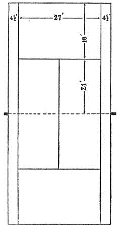 The standard dimensions for a double court are given. A convenient method of laying these dimensions out is given in the accompanying text