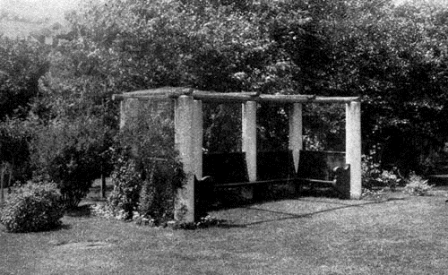 A tea house of suitable character is a great addition to a tennis court. This may be nothing more than a rustic covering to protect the heads of the spectators, with seats and a rustic table for serving the tea. If it is built on a terrace on the west side of the court visitors can watch the game under the most comfortable circumstances.