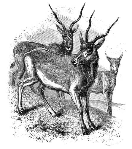 There is a species of animal mentioned once in the Scriptures under the name of Dishon which the Jewish Bible leaves untranslated, and merely gives as Dyshon, and which is rendered in the Septuagint by Pugargos, or Pygarg, as one version gives it. Now, the meaning of the word Pygarg is white-crouped, and for that reason the Pygarg of the Scriptures is usually held to be one of the white-crouped antelopes, of which several species are known. Perhaps it may be one of them—it may possibly be neither, and it may probably refer to all of them.