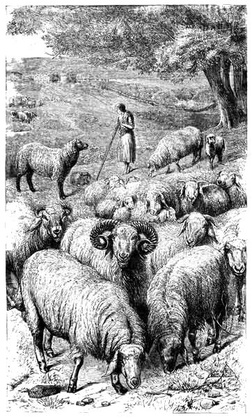 Passing his whole life with his flock, the shepherd was identified with his Sheep far more than is the case in this country. He knew all his Sheep by sight, he called them all by their names, and they all knew him and recognised his voice. He did not drive them, but he led them, walking in their front, and they following him. Sometimes he would play with them, pretending to run away while they pursued him, exactly as an infant-school teacher plays with the children.