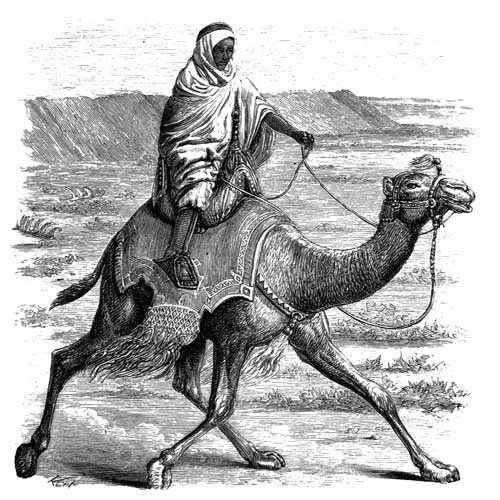 Even at the present time, these Camels are used for the conveyance of special messages, and in the remarkable Bornu kingdom a regular service of these animals is established, two couriers always travelling in company, so that if one rider or Camel should fail or be captured by the Arabs, who are always on the alert for so valuable a prey, the other may post on and carry the message to its destination.