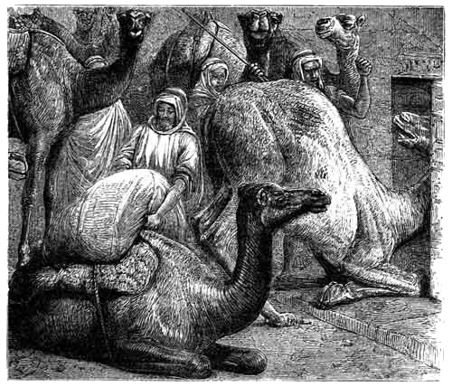 One source of danger to its rider is to be found in the low archways which span so many of the streets. They are just high enough to permit a laden Camel to pass under them, but are so low that they leave no room for a rider. The natives, who are accustomed to this style of architecture, are always ready for an archway, and, when the rider sees an archway which will not allow him to retain his seat, he slips to the ground, and remounts on the other side of the obstacle.