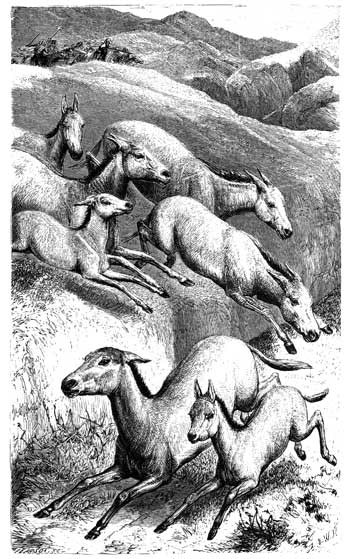 This diversity of spirit in similar forms is very curious, and is strongly exemplified by the semi-wild Asses of Quito. They are the descendants of the animals that were imported by the Spaniards, and live in herds, just as do the horses. They combine the habits of the Wild Ass with the disposition of the tame animal. They are as swift of foot as the Wild Ass of Syria or Africa, and have the same habit of frequenting lofty situations, leaping about among rocks and ravines, which seem only fitted for the wild goat, and into which no horse can follow them.