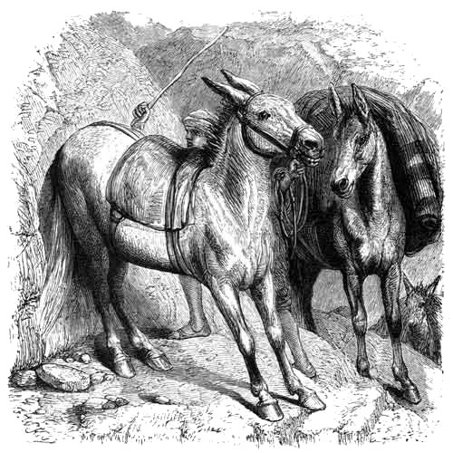 The origin of the Mule is unknown, but that the mixed breed between the horse and the ass has been employed in many countries from very ancient times is a familiar fact. It is a very strange circumstance that the offspring of these two animals should be, for some purposes, far superior to either of the parents, a well-bred Mule having the lightness, surefootedness, and hardy endurance of the ass, together with the increased size and muscular development of the horse. Thus it is peculiarly adapted either for the saddle or for the conveyance of burdens over a rough or desert country.