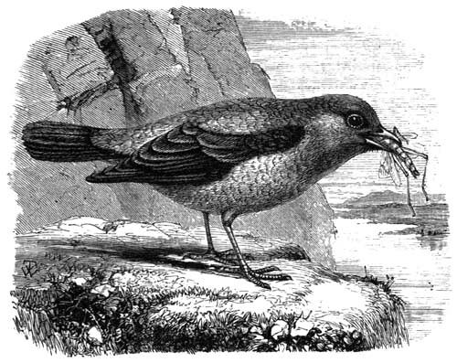 It is now evident that the "sparrow alone and melancholy upon the house-tops" cannot be the lively, gregarious Sparrow which assembles in such numbers on these favourite feeding-places. We must therefore look for some other bird, and naturalists are now agreed that we may accept the Blue Thrush (Petrocossyphus cyaneus) as the particular Tzippor, or small bird, which sits alone on the house-tops. The colour of this bird is a dark blue, whence it derives its popular name. Its habits exactly correspond with the idea of solitude and melancholy. The Blue Thrushes never assemble in flocks, and it is very rare to see more than a pair together. It is fond of sitting on the tops of houses, uttering its note, which, however agreeable to itself, is monotonous and melancholy to a human ear.