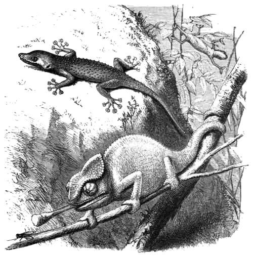 Translation of the word Koach—Signification of the word, and its applicability to the Chameleon—Power of the reptile's grasp—The prehensile tail—Demeanour of the Chameleon on the ground—The independent eyes—Its frequent change of colour—Mode of taking prey—Strange notions respecting the Chameleon—The Monitor, or Land Crocodile—Its habits and use to mankind—The Nilotic Monitor, and its habit of destroying the eggs and young of the Crocodile—The Gecko or Ferret of Scripture.
