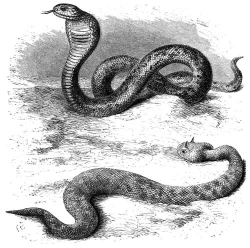 Serpents in general—Signification of the Hebrew word Nachash—Various passages in which the Nachash is mentioned—The fiery Serpents of the wilderness—Explanation of the words "flying" and "fiery" as applied to Serpents—Haunts of the Serpent—The Cobra, or Asp of Scripture—Meaning of the word Pethen—The deaf Adder that stoppeth her ear—Serpent-charming in the East—Principle on which the charmers work—Sluggishness of the Serpent nature—Ceremony of initiation into Serpent-charming—Theories respecting the deaf Adder—Luis of Grenada's sermon—The Cerastes, or Horned Serpent—Appearance and habits of the reptile—The "Adder in the path."