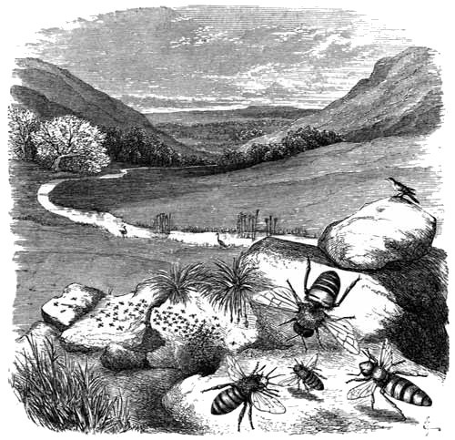 Several allusions are made in the Scriptures to this trait in the character of the Bee. See, for example, Deut. i. 44: "And the Amorites, which dwelt in that mountain, came out against you, and chased you, as bees do, and destroyed you in Seir, even unto Hormah." All those who have had the misfortune to offend Bees will recognise the truth of this metaphor, the Amorites swarming out of the mountain like wild Bees out of the rocky clefts which serve them as hives, and chasing the intruder fairly out of their domains.