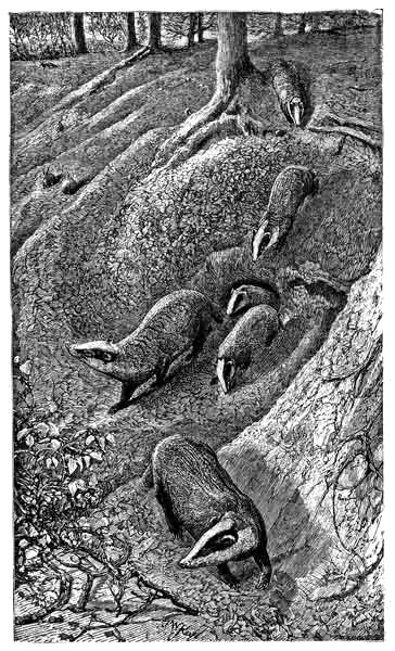We now come to our next point, namely, the aptitude of the Badger's skin to resist weather. Any one who has handled the skin of the Badger will acknowledge that a better material could hardly be found. The fur is long, thick, and, though light, is moderately stiff, the hairs falling over each other in such a manner as to throw off rain or snow as off a penthouse. And, as to the third point, namely, its possible use as a material for the manufacture of shoes, we may call to mind that the skin of the Badger is proverbially tough, and that this very quality has caused the animal to be subjected to most cruel treatment by a class of sporting men which is now almost extinct.