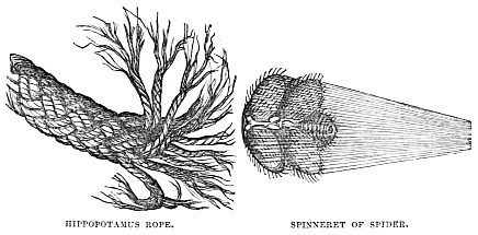 Considering that a full-grown hippopotamus weighs several tons, and, in spite of its enormous size, is as active as a tiger, we can infer the strength of the rope which must be needed to hold such an animal when excited with rage and pain.