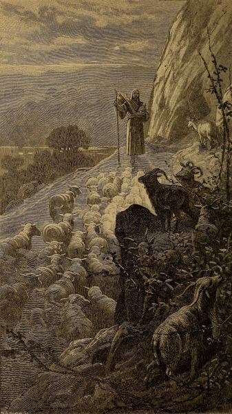 SHEPHERD LEADING SHEEP AND GOATS TO THEIR FOLD IN THE ROCK.