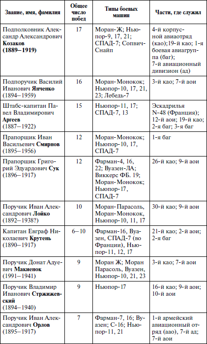 Александр Александрович КОЗАКОВ – от 17 до 32 побед в Первую мировую войну (4–5 из указанного числа побед одержаны в паре, одна – в составе 3 самолетов, остальные – лично, в том числе одна – тараном); русский ас, подполковник.