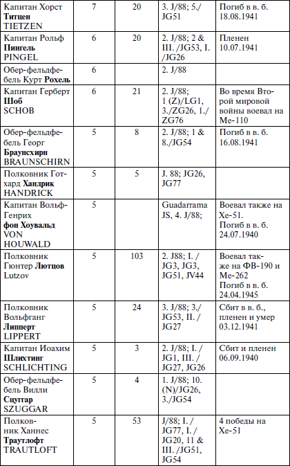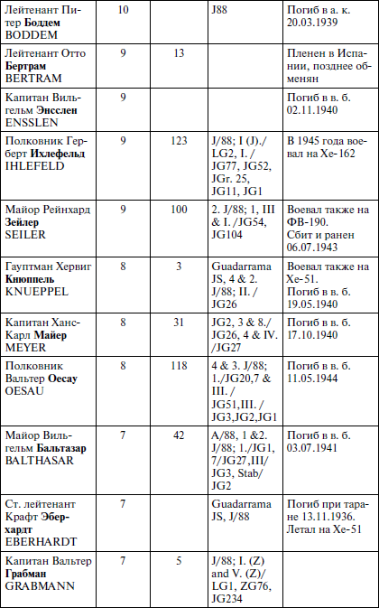 Все немецкие летчики, кроме оговоренных отдельно, воевали на Ме-109 (9, 54)