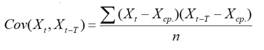 Для оценки тесноты и направления связи между переменными одного временного ряда с определенным лагом используется автоковариация. В частности, автоковариация между значениями Xt и X t -T отделенными друг от друга интервалом в T единиц времени, называется автоковариацией с лагом (задержкой) T, которая находится по следующей формуле (1.3):