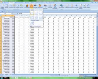 Во-первых, нужно на сайте Банка России http://www.cbr.ru/ взять необходимые данные по ежедневным курсам доллара за весь интересующий нас период. Во-вторых, после того как мы скопируем рыночную статистику в файл Microsoft Excel, все данные по курсу доллара к рублю с 1 июля 1992 г. по 1 января 1998 г. необходимо разделить на 1000, поскольку на сайте Банка России за этот период они приводятся в неденоминированном виде. В-третьих, для того, чтобы из всего массива данных оставить только необходимые для нас данные, а именно: курс доллара на конец месяца, необходимо их отфильтровать с помощью опций ДАННЫЕ/дополнительно/расширенный фильтр.