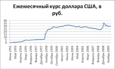 Рис. 1.2. Ежемесячный курс доллара США, в руб.