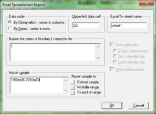 Более подробно обо всех нюансах импорта данных из Excel в EViews можно прочитать, например, в книге Турунцевой М.Ю. Анализ временных рядов / МИЭФ ГУ-ВШЭ. – М., 2003 стр. 4-9.