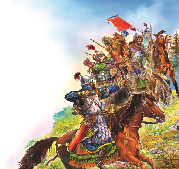 Монголы были кочевниками-скотоводами. Поэтому войско их было конным. Несущиеся в бой на небольших крепких конях с длинными гривами, монгольские всадники наводили ужас на любого противника. Они отлично владели луком, пикой, саблей. Пики были снабжены крючьями для стаскивания неприятеля с лошади. Стрелами с калеными наконечниками всадники стреляли по воинам, защищенным доспехами, легкие стрелы применялись в стрельбе по дальним целям. Для того чтобы легче было управлять боем, воины одного отряда носили одежду определенного цвета, лошади в отряд подбирались одной масти.