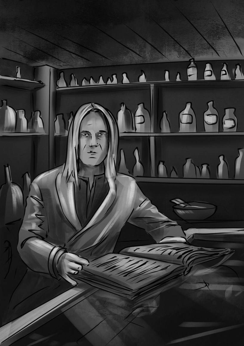 Покопавшись пару минут за конторкой, старик извлек на свет большущий фолиант, бережно сдул с него пыль и положил на стол так осторожно, словно это была не книга, а хрупкий карточный домик. Склонившись над страницами, он некоторое время аккуратно перелистывал их, пока не нашел нужную.