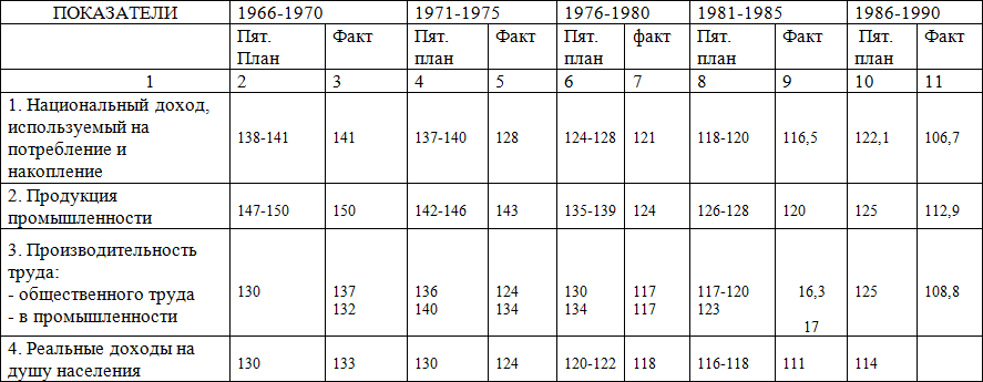 Как выполнялись несколько последних пятилеток можно видеть из таблицы 2: