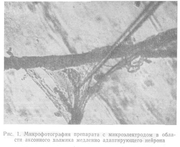 Микроэлектрод подводили с помощью микроманипулятора ММ-1 к избранной точке нейрона под контролем микроскопа МБР-1 (рис.1). В качестве источника раздражающего тока использовался генератор Г3—47.