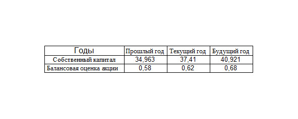 Следующий коэффициент – балансовая оценка акции. Определяется по формуле: