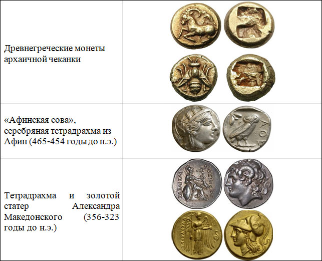 Иллюстрация 2 . Аверс и реверс древних монет.