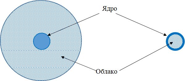 Иллюстрация 5. Сравнение моделей обычного (слева) и мюонного (справа) атомов