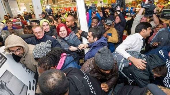 В крупных торговых центрах разных стран отводится определенное время для продажи товаров по сниженным ценам, и толпы покупателей ломятся в двери, сметая все на своем пути, в том числе и самих себя. В США такие льготные дни называются «черными пятницами» и не потому, что основной контингент покупателей составляют афроамериканцы, менее состоятельные граждане этой богатой страны. На фотографии их едва заметное меньшинство, что свидетельствует о каком-то психологическом стимуле разжиться на дармовщину, независимо от расовой принадлежности. С недавних пор такая неприглядная картина пришла и на российское торговое пространство, даже когда был ликвидирован дефицит товаров. Сотни тысяч страждущих разбогатеть за счет «манны небесной» пострадали от финансовых «пирамид», не разглядев в обещаниях баснословных прибылей совершенно очевидное надувательство. Корысть оказалась выше разума у гомо сапиенса – человека разумного.