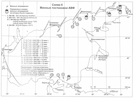В районе затонувшего судна «Immanuel» в Мариуполе были обнаружены якорные мины, из выставленных СКА-0412 в районе Мариуполя (NARA T1022-2530-00021).